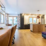 The 150 m^2 Wiwa Appartement is located at a distance of 4.9 km from Konigslehen II and a mere 11 minutes' walk from Achter Jet. Staying in this 4-bedroom apartment, nestled not too far from Rodelbahn Lucky Flitzer, guests can relax on a sunny patio.